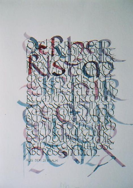 Margret Meyer Aus dem Psalm 23: Der gute Hirte Kalligrafie 2010 Römische Unziale - verschieden groß übereinander |